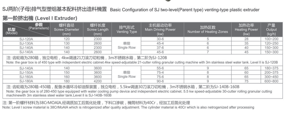 我公司生產(chǎn)的擠出機(jī)采用不同的螺桿設(shè)計(jì),適用于多種塑料的再生造粉,螺桿料筒經(jīng)特殊的硬化處理,具有耐磨性,高產(chǎn)能特性,兩階(子母)排氣型塑料按出造粒機(jī)組有“丁字型”排列設(shè)計(jì),兩擠出現(xiàn)都設(shè)計(jì)有排氣和快速更換濾網(wǎng)裝置,可重復(fù)將物料加熱后產(chǎn)生的氣體排出并經(jīng)過兩次過濾將物料的雜質(zhì)過濾使造出來的顆粒更結(jié)實(shí)、光滑、純凈。此機(jī)最適合于ABS、聚苯乙烯(PS)、高壓聚乙稀(LDPE),低壓聚乙烯(HDPE),聚丙烯(PP)等再生擠出造粒。部份機(jī)型參照國外技術(shù)及按我國實(shí)際情況而設(shè)計(jì),已被廣大客戶采用。